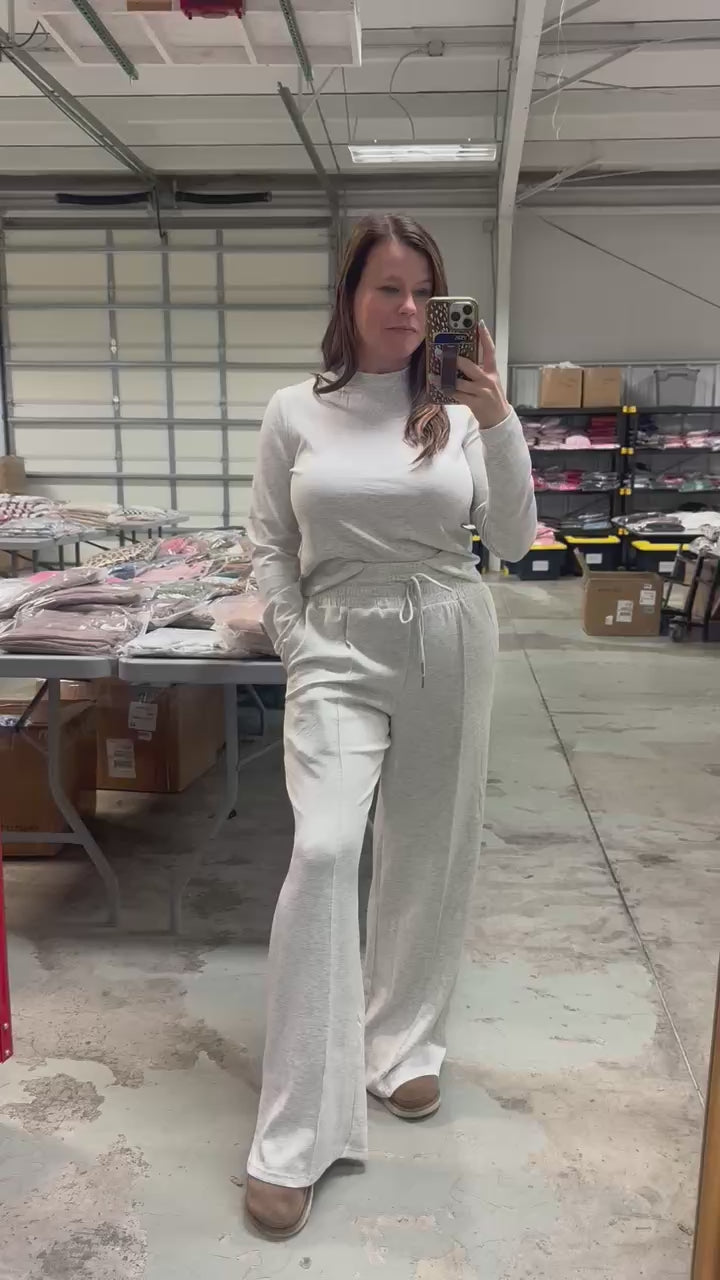 Stay effortlessly chic this season with the Grey High Neck Set. This two-piece ensemble features a long-sleeve cropped top with a stylish high neck, perfectly paired with drawstring elastic high-waist wide-leg pants. Designed for comfort and style, this set offers a slim pullover fit that balances the relaxed silhouette of the pants, making it ideal for fashion-forward looks. Embrace versatile elegance whether you're out for casual days or stylish evenings.