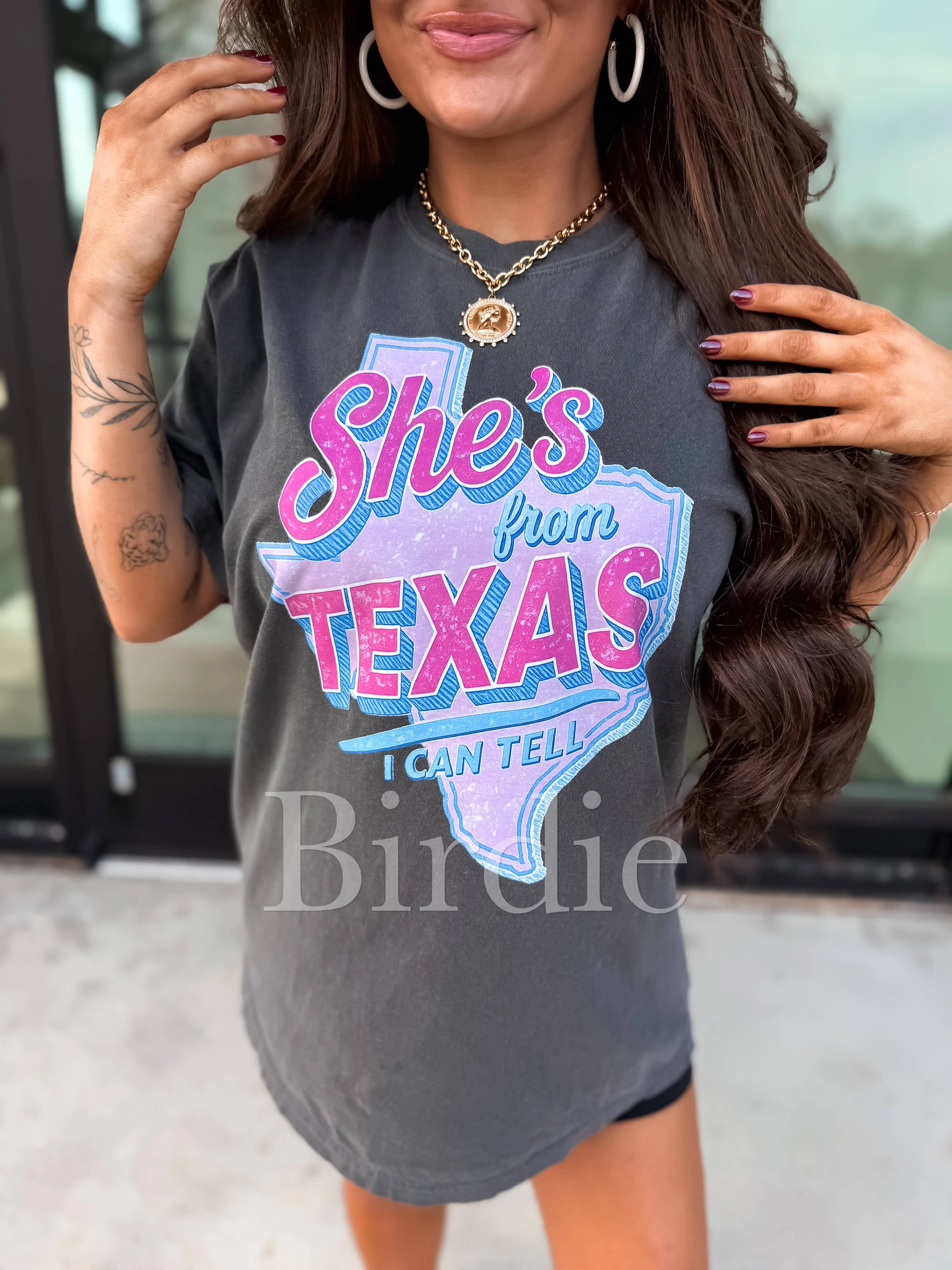 She’s From Texas Pink + Blue Graphic Tee on Pepper