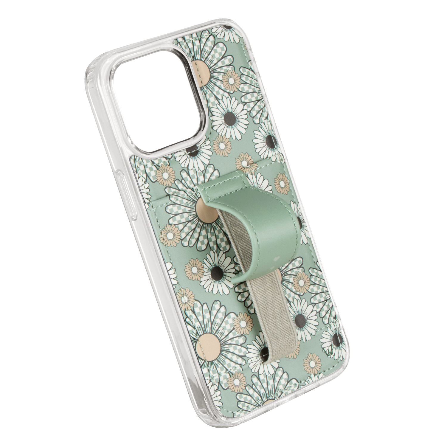 Case Design: Checkered green and white flowers on a green background