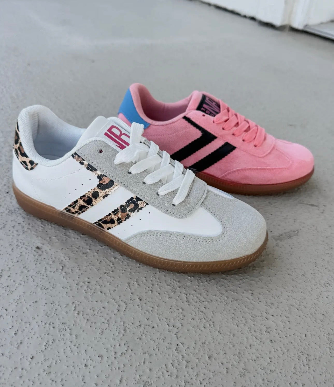 Meet your new go-to pair for everyday style with a hint of sass. The Stockholm White Sneakers blend crisp white faux leather with soft gray suede accents, while a metallic leopard detail at the heel and sides adds that perfect touch of bold charm.
